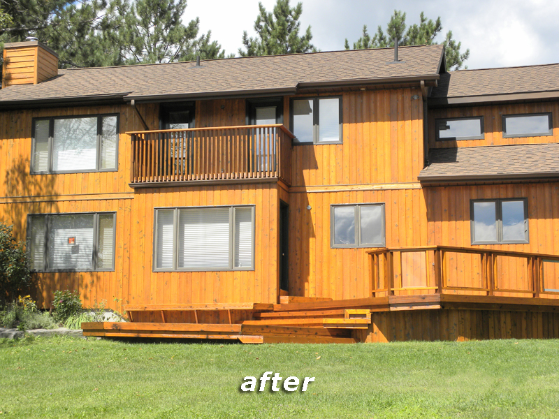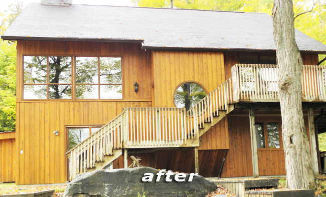Recently we completed an Exterior Restoration on a home which was hand crafted with BC Cedar located on a sun/shade lake front property. Sunshield Wood Coating was their choice of protection when they built their home 30 years ago.